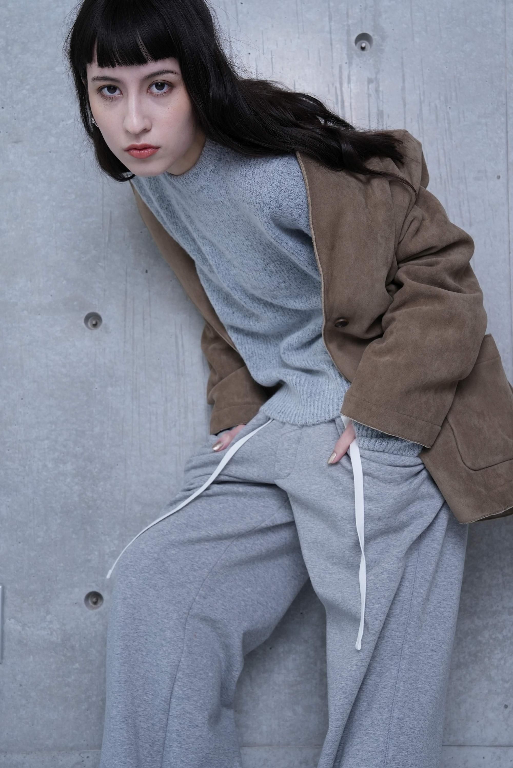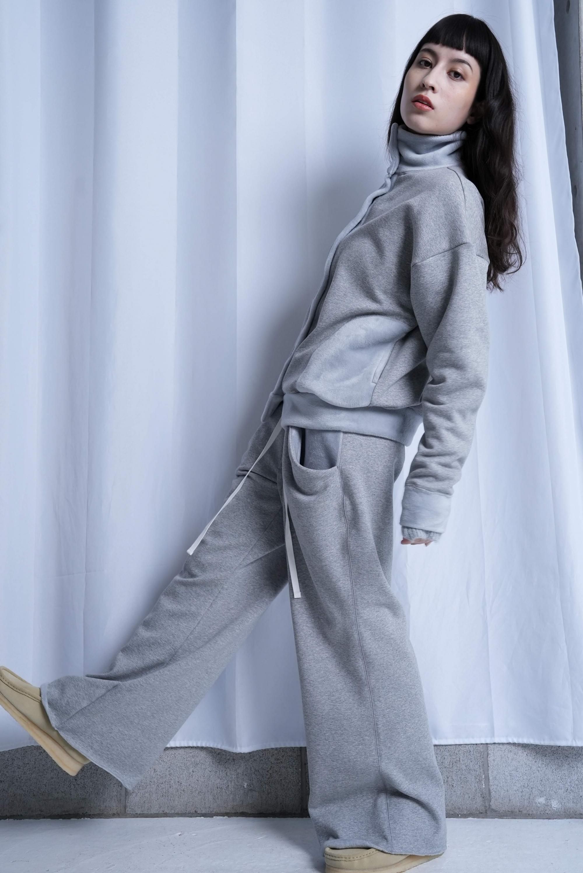 肌に触れる内側に肌触りの良い起毛面を使用し滑らかさはさることながら温かみストレッチ性も兼ね備えたフリース素材です。デザイン的にポケット口をドレープさせ遊び心のあるワイドスエットパンツ。ウエストはゴム、裾は断ち切りデザインです。MADE IN JAPAN.同素材でパーカー,トラックJKのご用意もございます。